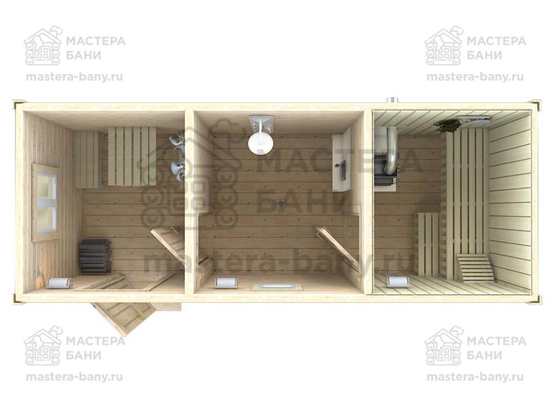 Помещений: 2 или 3 помещения (парная, моечная, комната отдыха)