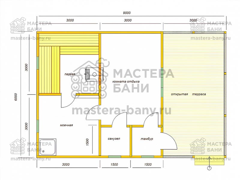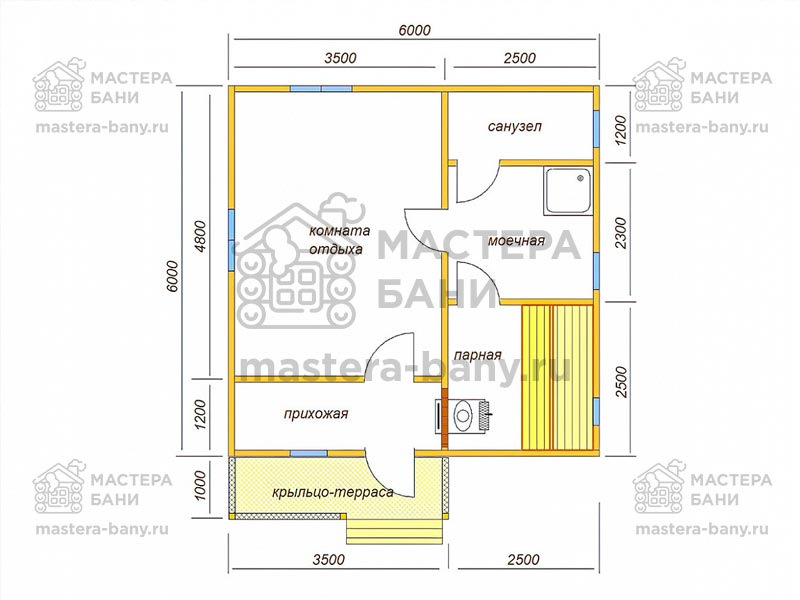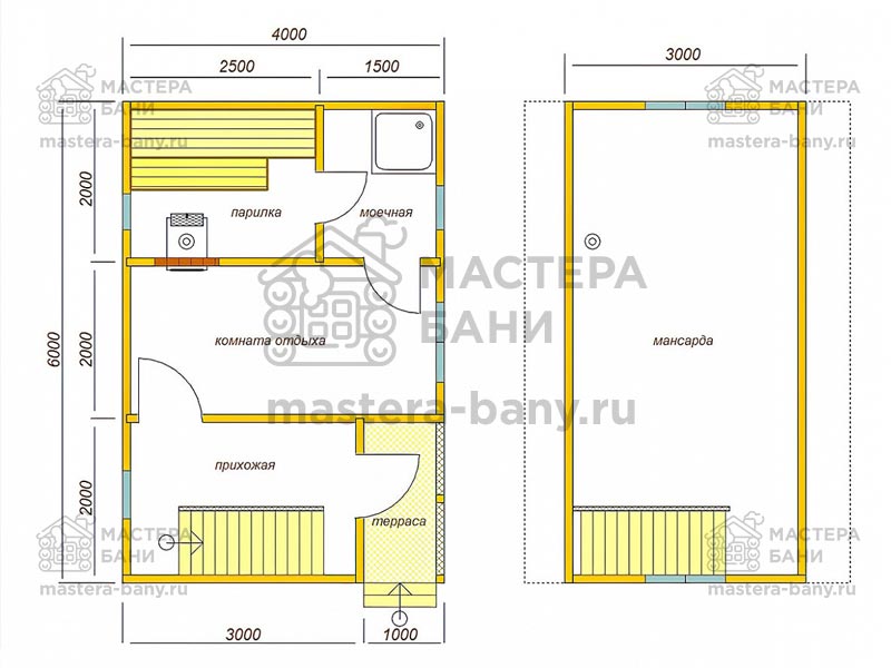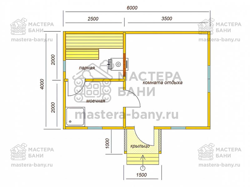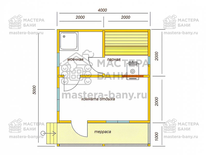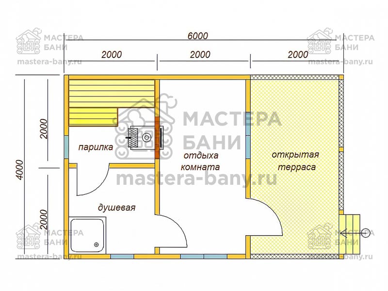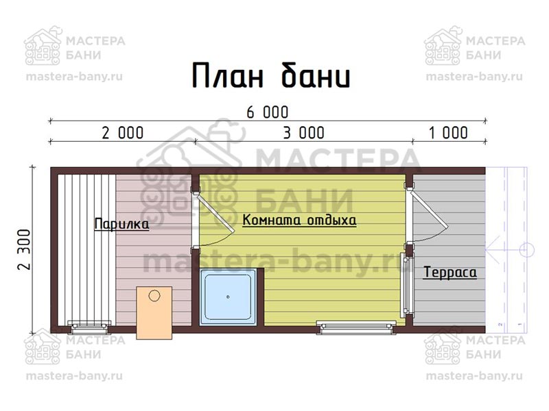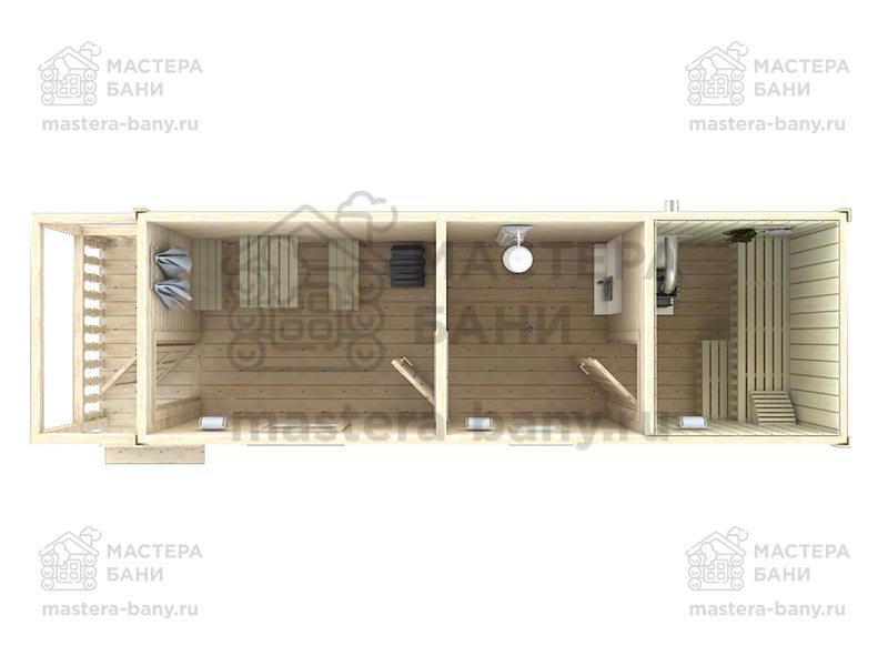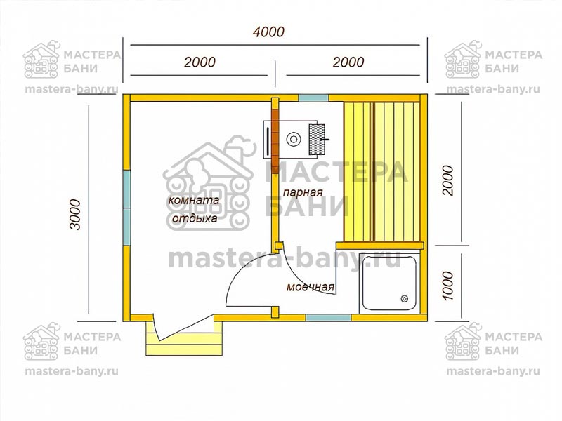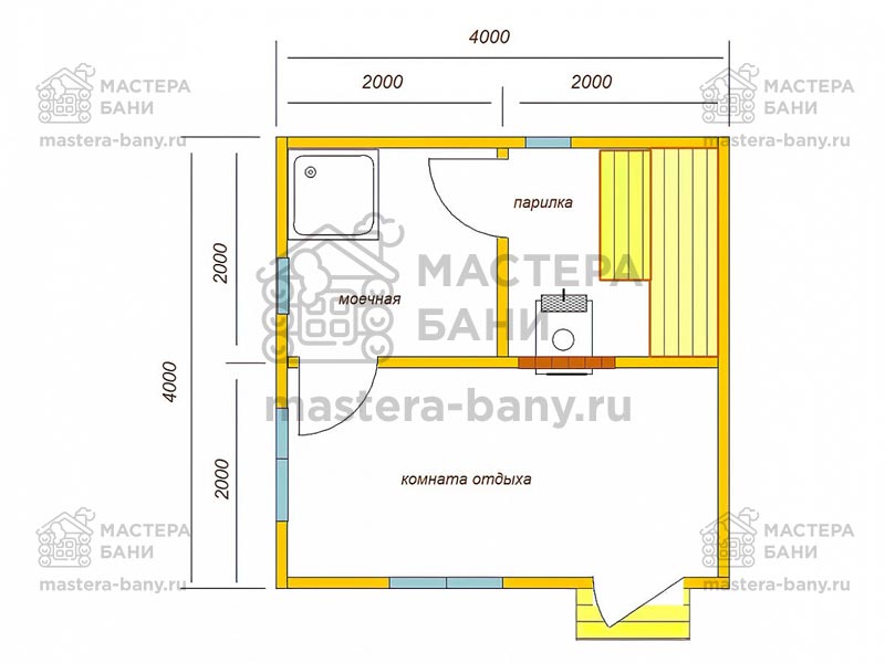 Помещений: 4 (парная / моечная / комната отдыха / санузел)