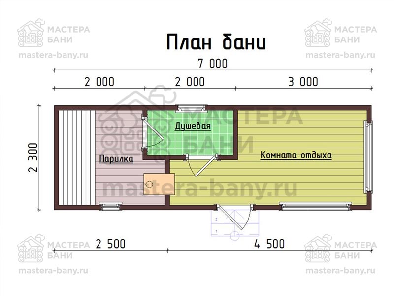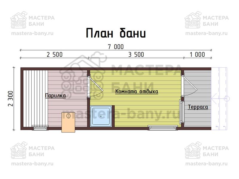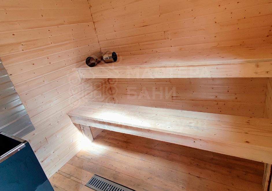 Помещений: 2 (парная, комната отдыха), можно добавить моечную