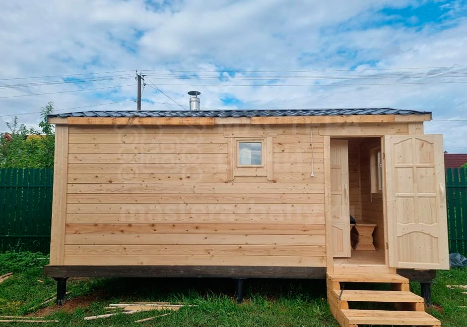 Готовая мобильная баня из бруса или каркаса за 7 дней без предоплаты с доставкой и установкой