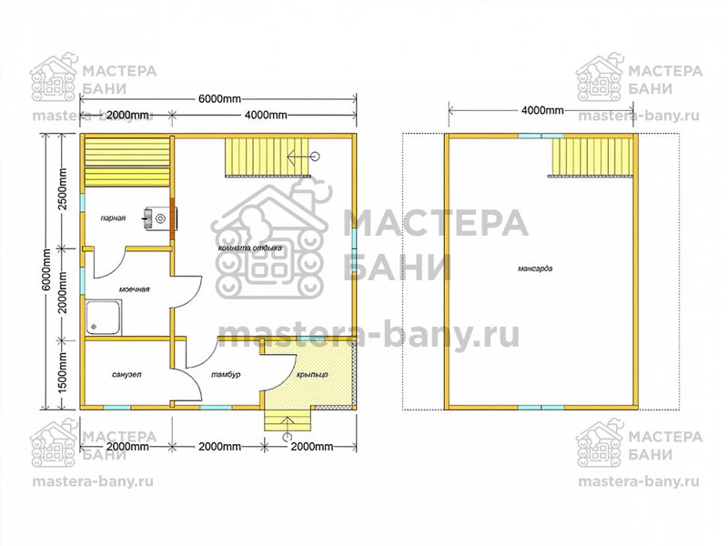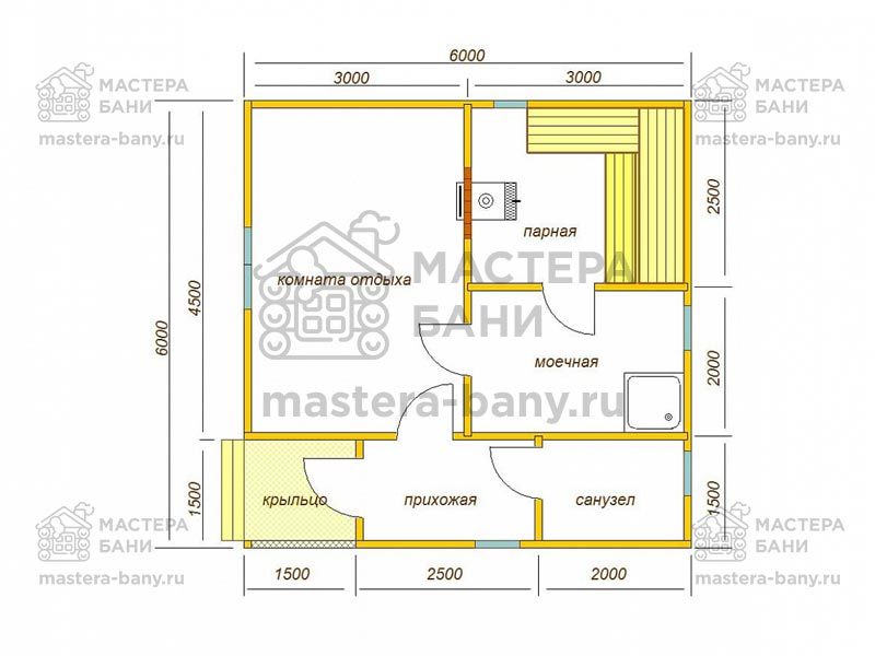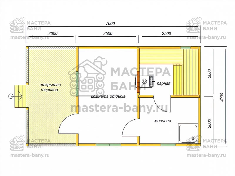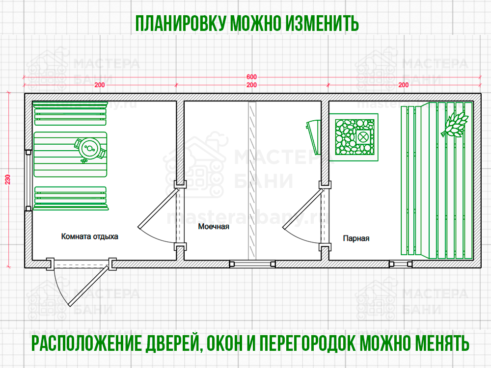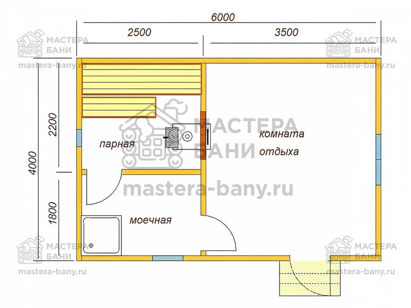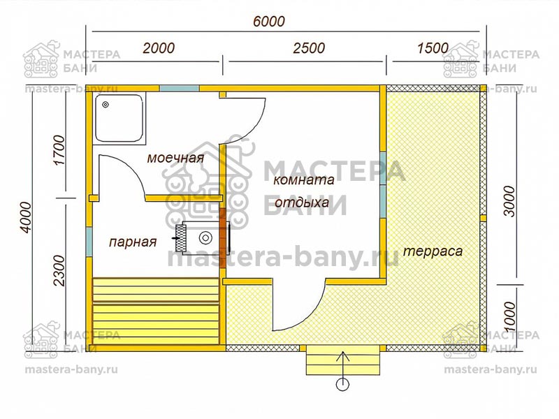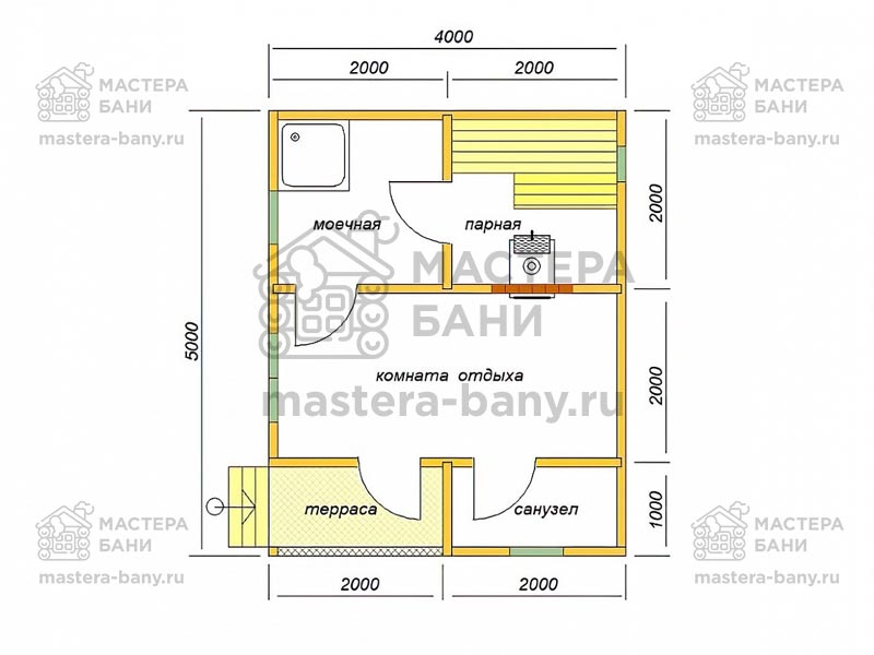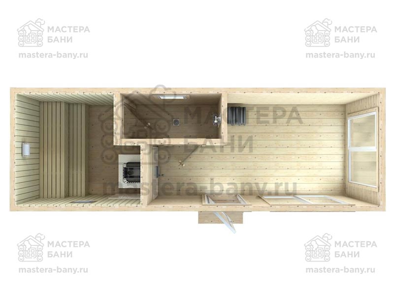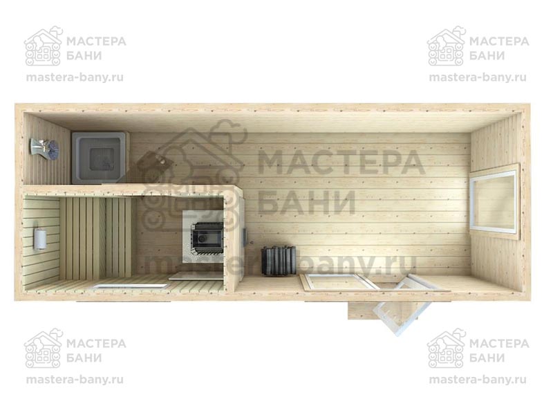 Помещений: 4 (парная / моечная / комната отдыха / санузел)