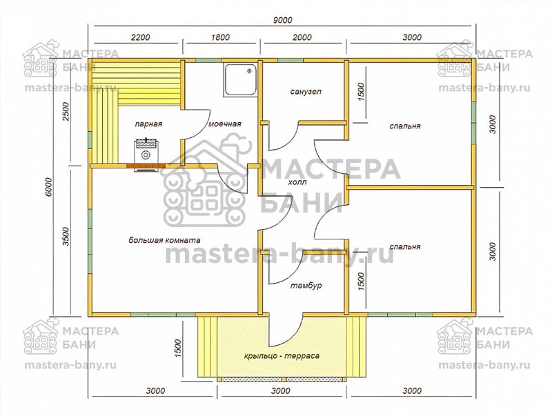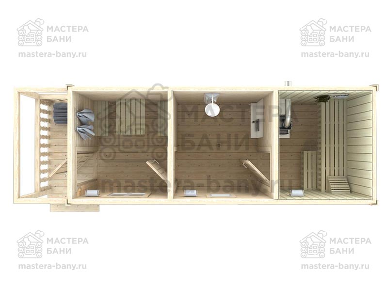 Помещений: 2 или 3 помещения (парная, моечная, комната отдыха)